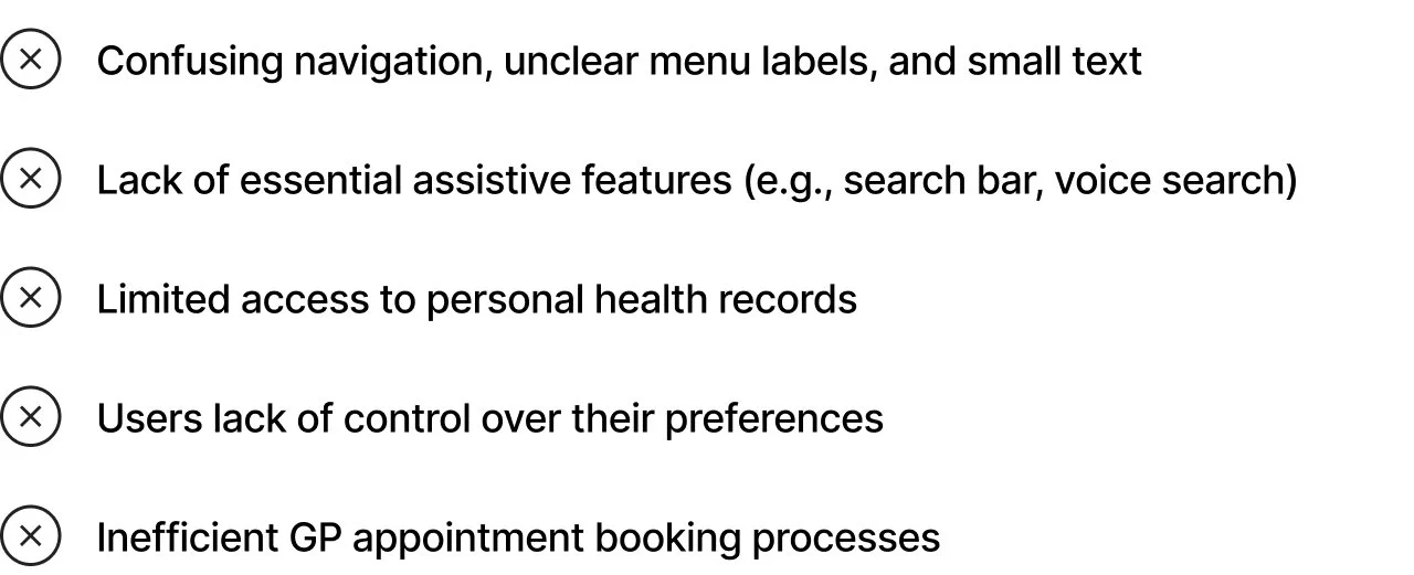 My research, including an online survey, MAUQ framework evaluation, reviews of relevant paper and online NHS reports, and app observations, uncovered several core issues contributing to user dissatisfaction.