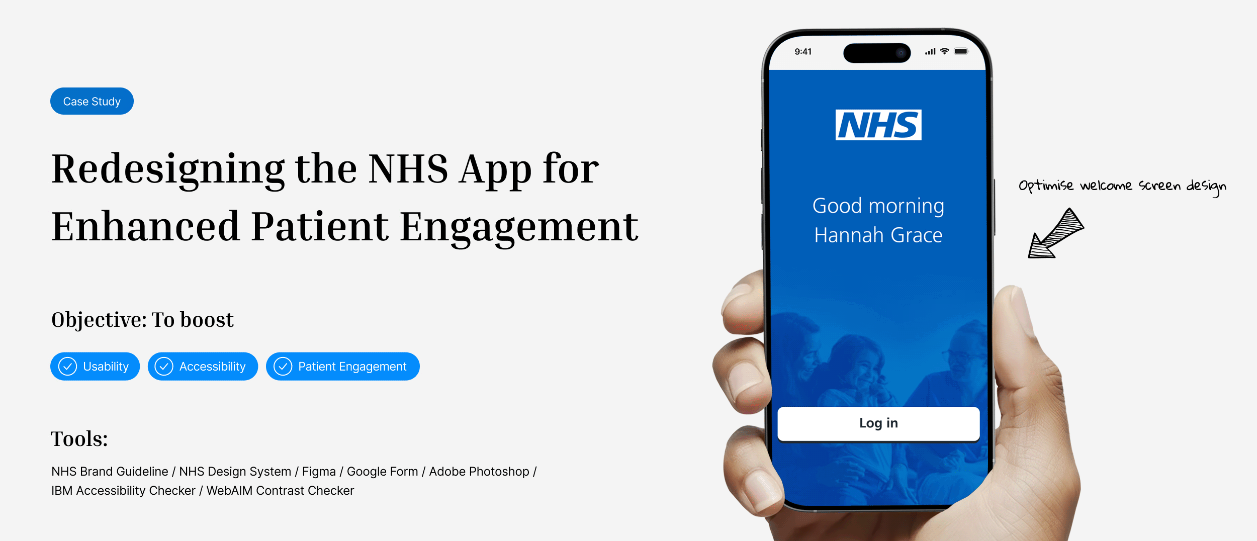 Despite being the UK's primary digital healthcare tool and continuous 'digital-first' efforts since 2019, the NHS mobile app struggles with low user satisfaction, averaging just 3.1 out of 5 on the App Store in 2025. This project aimed to address critical gaps in Usability, Accessibility, and particularly, Patient Engagement.